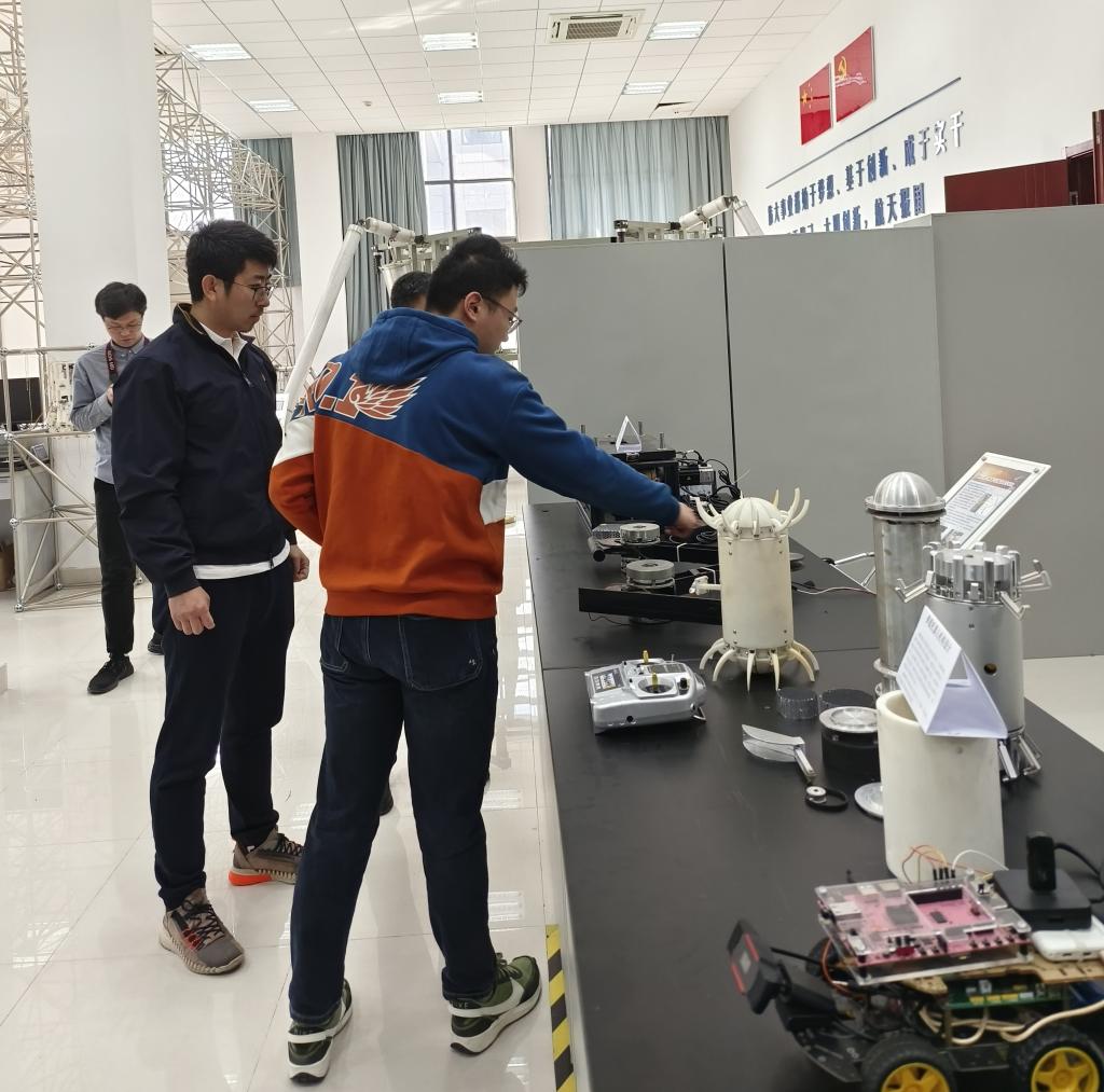 李京阳一行参观了航天进入减速与着陆技术实验室、微小卫星态势感知与操控实验室、光电信息感知与功能材料实验室和南航航天教育教学基地。
