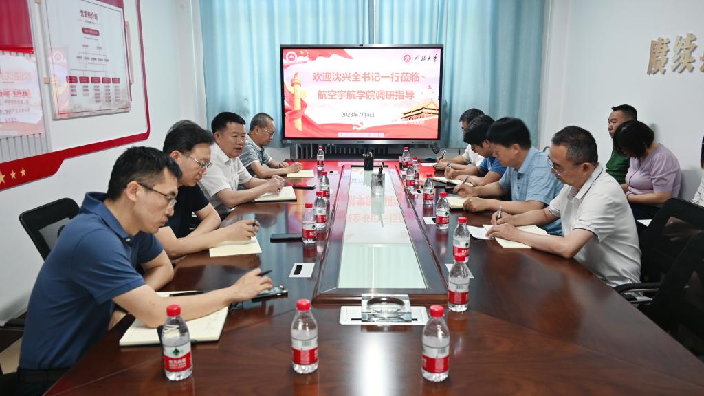成立一年来在高层次人才引进、对外合作交流、项目申报与获批、科研经费增长等方面取得的突出成绩、焕发出的强大生机与活力。为推动学院实现高质量发展,沈兴全书记提出四点意见:一是学院要锚定冲击博士点的目标,力争在2025年实现;二要进一步明确学科方向,凝练学科特色;三要对航空宇航学科与力学学科进行深度融合,破除“两张皮”的现象;四要加强对青年教师的培养,继续加大高层次人才的引进力度。同时,青年教师要积极主动走进企业,到企业进行挂职锻炼,提升能力、增长才干;五是学院领导班子要团结一致、目标一致,要加强和完善各项规章制度,不断推动学院各项工作再创佳绩,为学校创建“双一流”贡献力量。