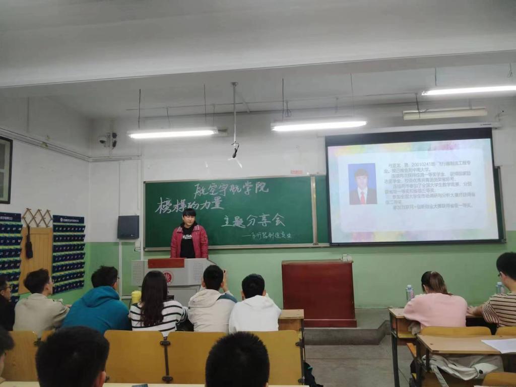 为充分发挥优秀学生成长导向作用,帮助初入大学的学生更好地适应大学学习、生活节奏,10月13日上午,武威壮、刘鑫、弓亚龙、武承芸、赵翔翔、赵刚6名飞行器制造专业优秀学生代表应邀在1号教学楼参加“榜样的力量”经验分享交流会。
