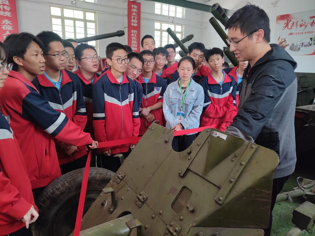 火炮库作为重要的兵工发展科普基地,陈列着各类火炮武器,志愿者们以高中生知识结构为基础形象生动地为大家讲述每种火炮的名字特性、作用效果及背后的故事,激励鼓舞了在场的每一位听众。大家从讲解中了解了中国共产党领导下的兵工事业从无到有、从少到多、从弱到强的迭代发展过程。爱国强国的种子在每一位学生的心底生根发芽。