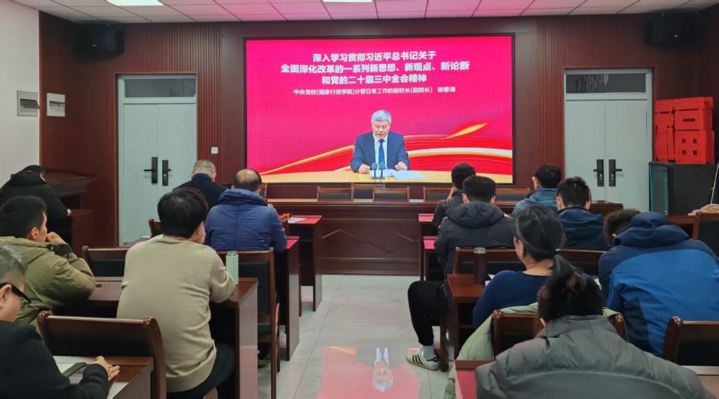 支部书记赵熹强调学习贯彻党的二十届三中全会精神是当前和今后一个时期全党的一项重大政治任务,全体党员要把思想和行动统一到全会精神的具体行动上来,也为参训党员提出了两点要求:要提高政治站位深入学、要严守纪律要求主动学。随后,全体党员共同学习了《深入学习贯彻习近平总书记关于全面深化改革的一系列新思想、新观点、新论断和党的二十届三中全会精神》。
