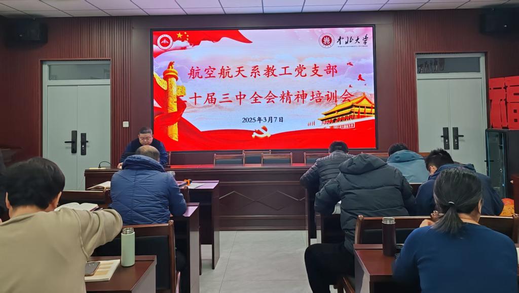 3月7日下午,为深入学习贯彻党的二十届三中全会精神,航空航天工程系教工党支部全体党员在学院310会议室学习贯彻党的二十届三中全会精神。