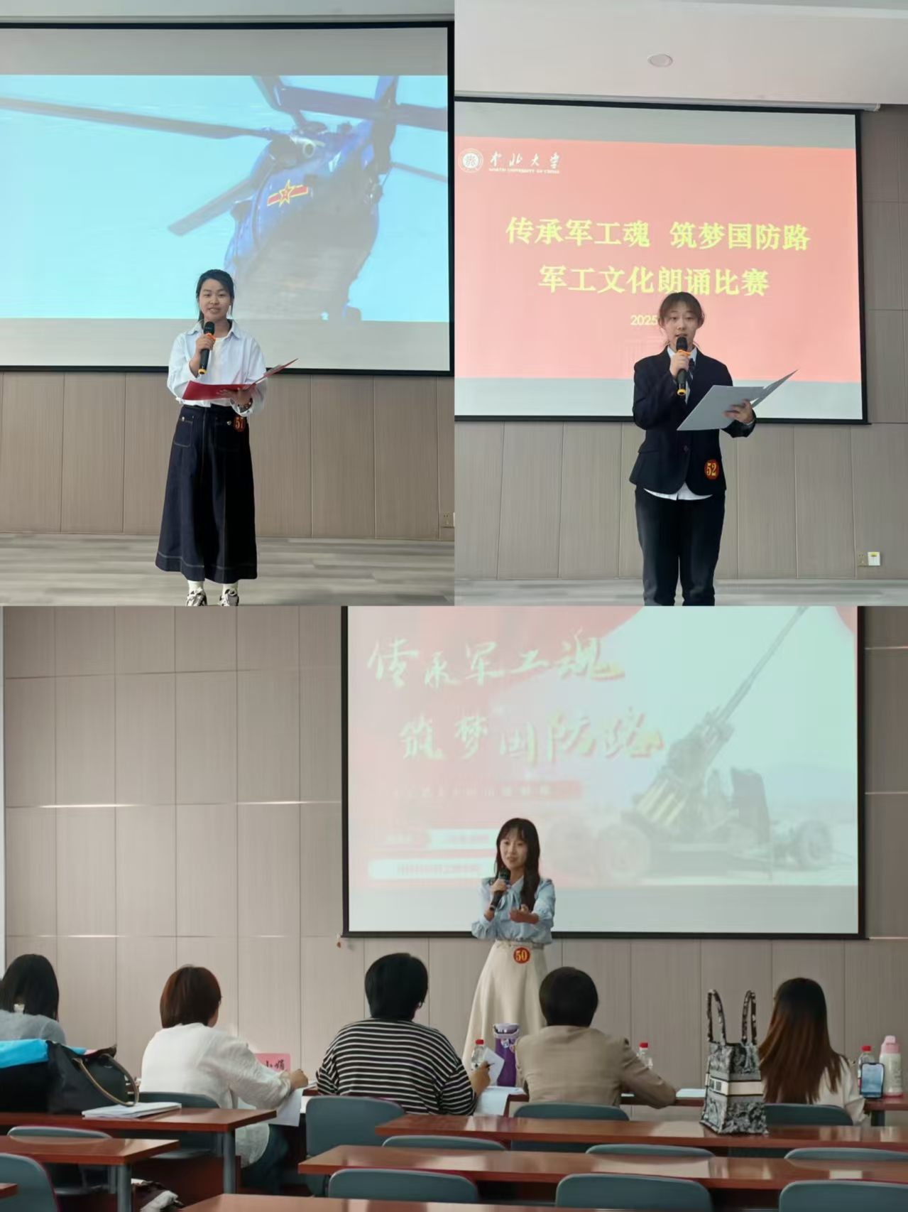 比赛现场,气氛热烈而庄重。舞台上,选手们身着整齐的服装,精神抖擞,目光中透露出对军工文化的敬仰与热爱。他们紧扣军工文化主题,围绕展品研发故事、历史节点等精心选材,以单人朗诵的形式,将一个个动人心弦的军工故事娓娓道来。