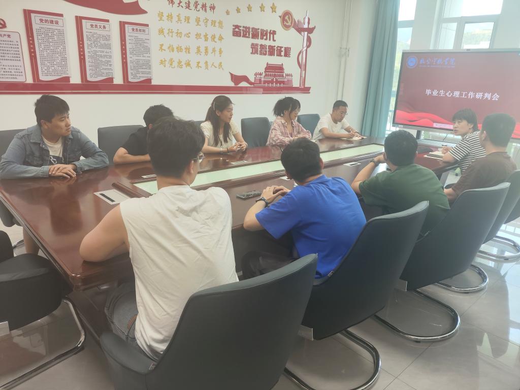 于5月15日组织召开毕业季心理委员专题研判会。毕业生班主任王姣、霍英杰,辅导员段雪倩及大四心理委员参加会议。
