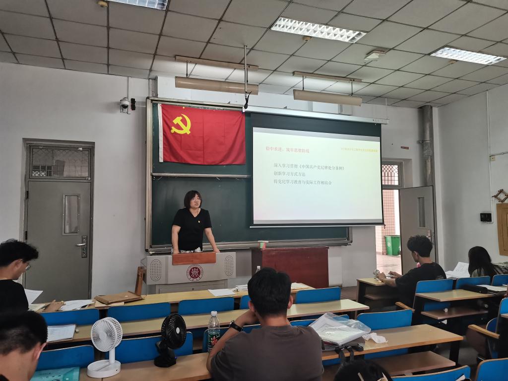 为深入学习贯彻习近平总书记关于党纪学习教育的重要论述,按照学校党纪学习教育部署和要求,2024年6月19日,飞行器设计与工程学生党支部书记段老师在11211H教室为全体学生党员讲授以“深化党纪学习,增强纪律认识”为主题的纪律党课。