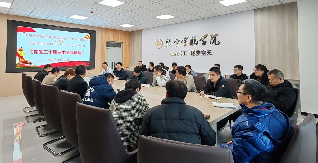 邀请学校宣讲团成员、数学学院党委书记薛亚奎在学院314会议室为航空学院教工党员开展了党的二十届三中全会精神宣讲。
