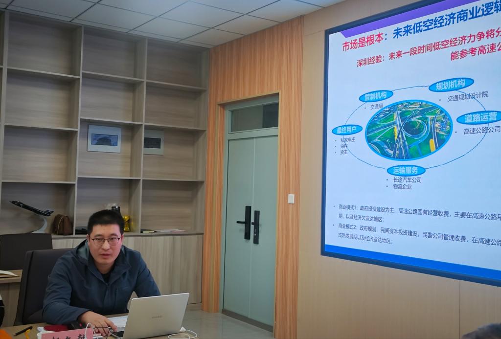 在科研创新等方面的合作愿景,期望整合资源,共同攻克技术难关,推动低空经济的发展。航空航天系副主任郝文乾介绍《低空经济及无人机产业发展》,阐述发展低空经济,需要聚焦“一核心、五要素、N+场景”;强调安全是底线,政策是保障,空域是关键,市场是根本。郝文乾还介绍了拟新申办专业“低空技术与工程”情况。双方围绕低空经济及产业发展、人才培养、科研创新等关键议题深入交流,达成多项重要共识。